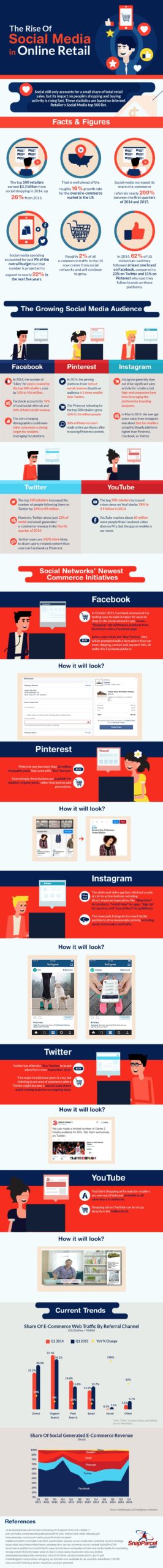 Helping social media’s growth in retail sales are the Buy Now and various call to action buttons that most of the major social media sites have integrated into their platforms. These CTA buttons enable users to buy directly from their social media streams, as this infographic from SnapParcel shows.